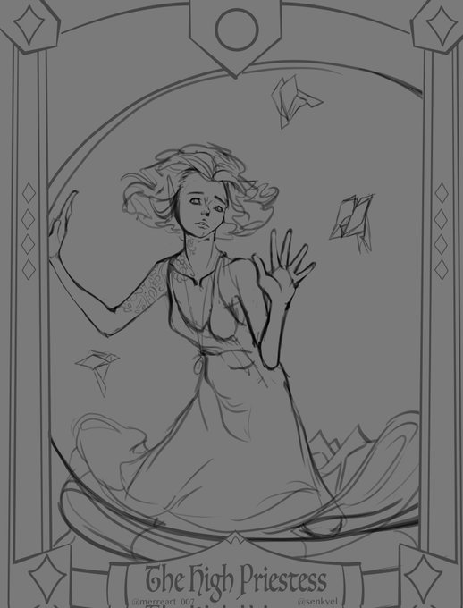 We each drew a sketch and then rendered each others! So Tuva drew the Queen of Swords and I chose The High Priestess and Tuva did the most beautiful render of it!!! Thank you so much for doing this collab