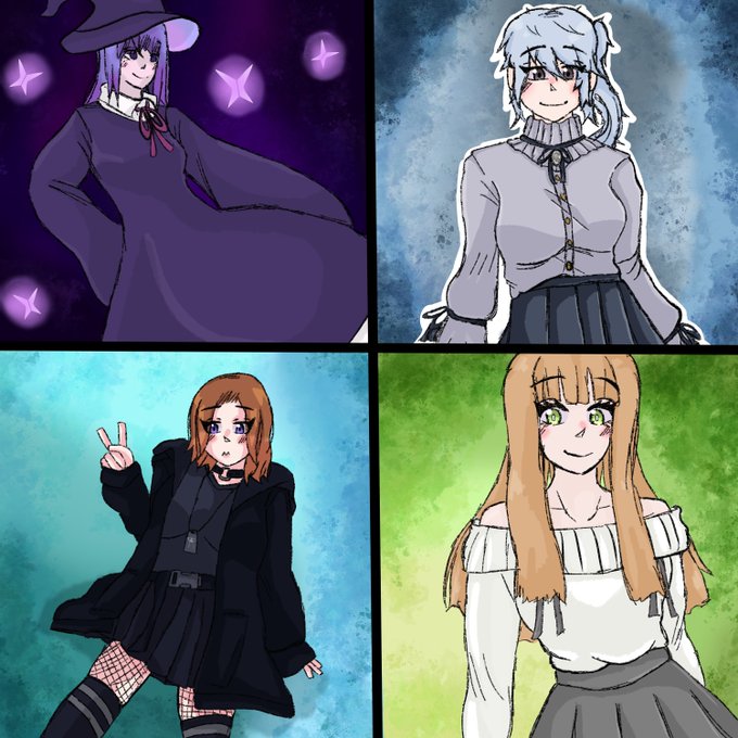 I have two artstyles eheh,one simple(the first one) and one much detailed(the other 3). I use the simple one for artfight and for things I need to finish quickly,then I use the detailed one when I have more time and I also use it for artrades(off artfight), commissions =D