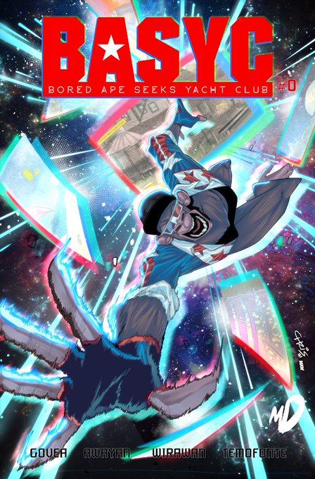 Through his comic ‘BASYC’ he is telling the story of American Ape and his journey to search for the Bored Ape Yacht Club.