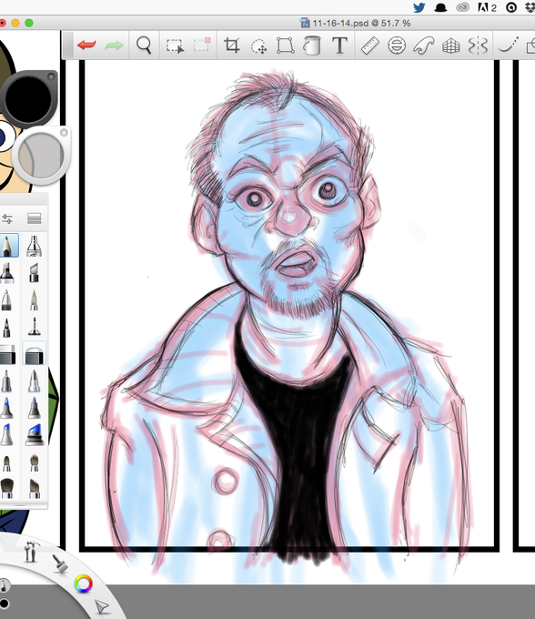 Panel in progress. Crazy Michael Keaton from Birman #BirdmanMovie #doodleoftheday