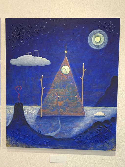 大阪狭山市のGallery Blau Katzeで開催中の「かぜあそぶ」展を見て来ました。モデリング・ペーストを使った凝ったマチエールで不思議な背景を作り出していました。無表情の人物が静謐な絵画空間にマッチしていました。