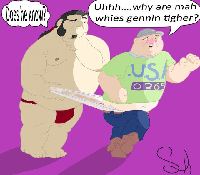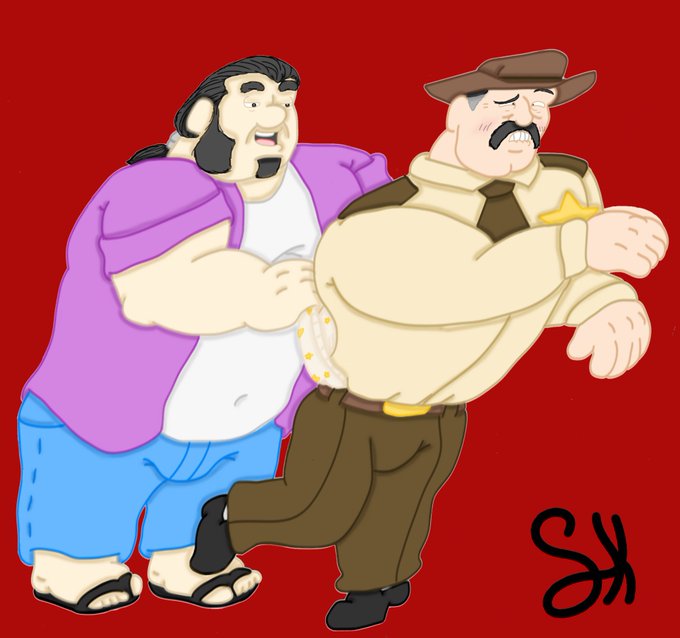 Baku: See what I mean? Look at this big doofus. He's Sheriff Bronson Stone from Scooby Doo Mystery Inc. Prime candidate for a wedgie, though he does sound familiar. #SumoKun #Wedgie #OC #BakuNiamoto #Scoobydoo