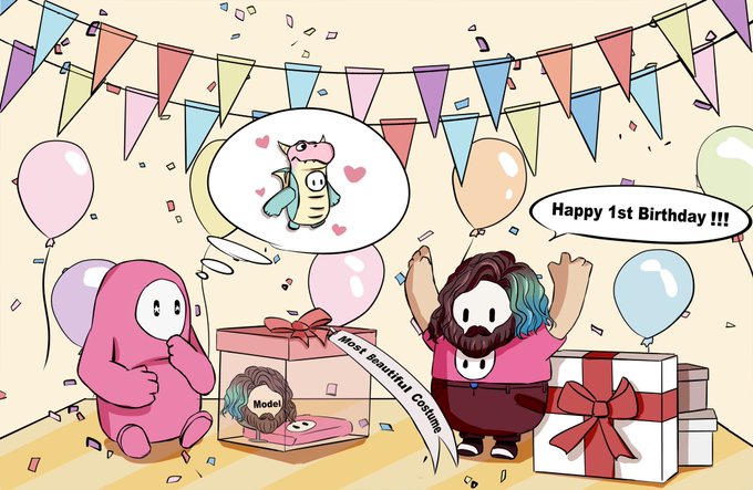 Happy 1st Anniversary🎉🎊🎈🍾🥂🎊🎉 @FallGuysGame @Mediatonic #HappyBeanDay #FallGuysArt @OliverAge24 Love you Fall Guys three thousand times, as always!!!