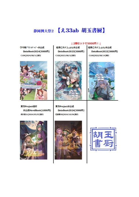紅楼夢19、き-10ab「胡玉書厨」新刊『東方Project非公式DataBook2023』入稿完了しました~。