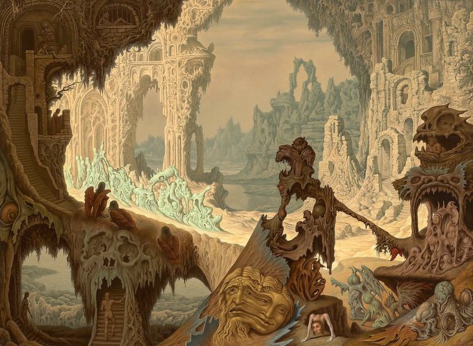 Johfra Bosschart paintings. I like the grand, surreal nature of them. He was known for his zodiac paintings but I prefer these for their fantastical/mysterious vibe and scope.