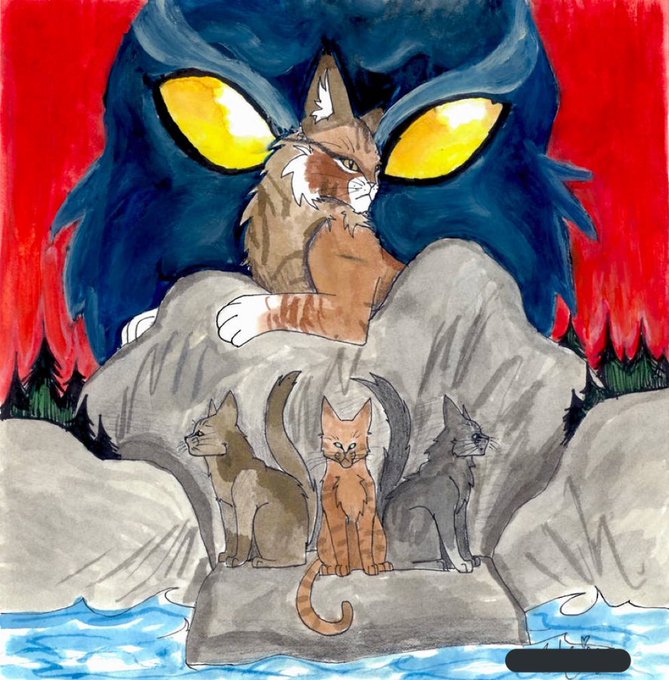 (3/5) their parents died it goes to kin. The holow tree is were the leader and their mate sleeps, the entrance is to the far left were shade and another cat are coming in from hunting. The fresh-kill pile is at the rock two cats are siting (brownTabby and gray tabby).