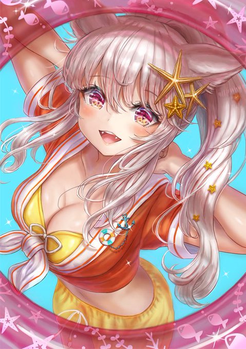 C94お品書きと新刊表紙イラストです。猫耳女の子の夏っぽいイラスト本です。