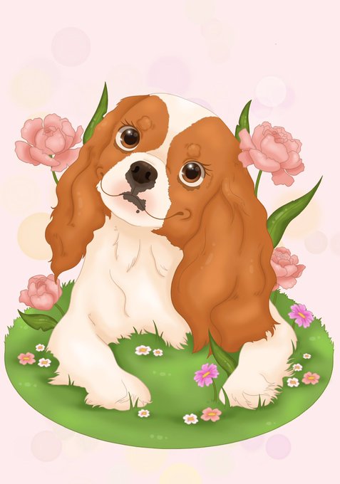 Here is a little commission I did for an adorable #cavalierkingcharles ! Hope you’ll like It guys 🐶💖