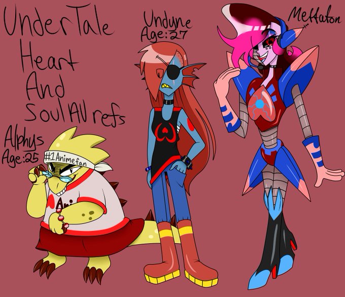 Refs #MonsterKid, #Gaster, #Alphys, #Undyne, and #Mettaton from my HeartAndSoulAU comic series that I've drawn.