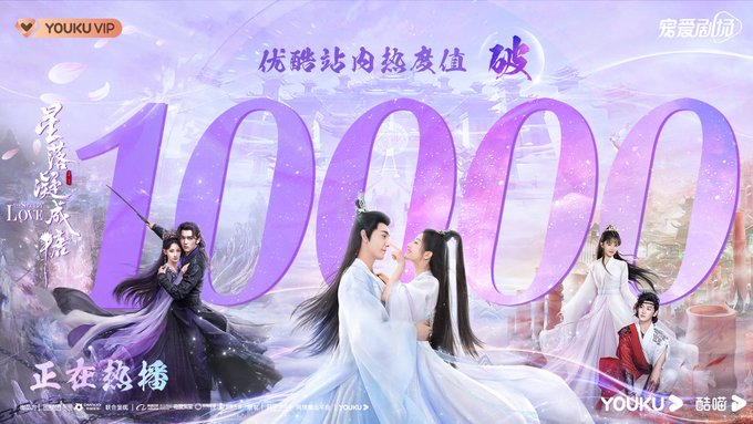 Big congrats to #TheStarryLove team that has achieved 10 000 heat on Youku 🥳 Very well deserved, it is such a fun drama to watch. #LiLandi #ChenXingxu #ChengMuchi #HeXuanlin