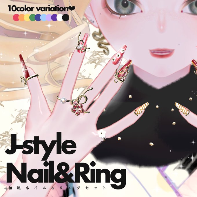 和風ネイル🎍J-style Nail&Ring | #tekona0STUDIO https://t.co/uSYjDrVz0Z #booth_pm #brochiManac_3D #PochibyKT