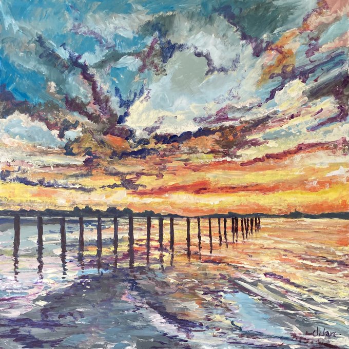 This painting came about after a winter walk along Chichester Harbour towards East Head, with the Isle of Wight on the horizon. The tide was low and the sun setting made beautiful reflections on the mudbanks. It was a windy day, too windy for plein air p… https://t.co/xKU4ve6VKj
