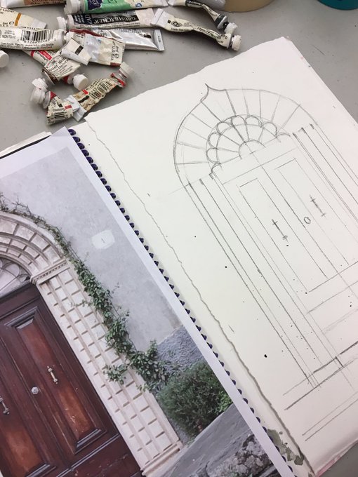 quick study painting from sketch of Sabine #cobbartteacherscreate #cobbartrocks