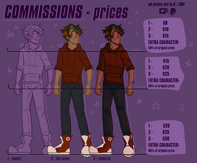 posting my new commission sheet coz i am VERY MUCH still in need of money 😭 why is gas and electric so expensive rn