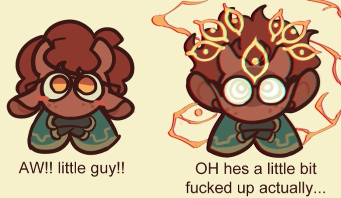 @SynthCharmVA hello! this is Gilligan, soft-spoken bookish type who works with medicine and is harboring an eldritch sun abomination in his brain that acts as his overbearing conscience. Frequently gives him horrifying prophetic visions and anxiety attacks. He also likes birds!