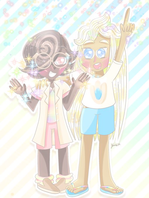 The #CookieADay was Madeleine today so I thought I’d get a #pride-themed illustration out with him and Espresso since I HC them both as gay! ❤️🧡💛💚💙💜