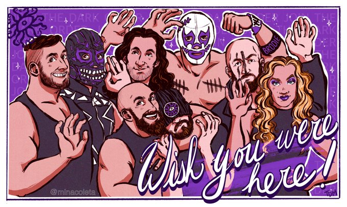 I was looking for some Dark Order/Mr. Brodie Lee fan art to make my desktop background, and this homage to #Spiderverse reimagining the Spider-Men as @Pres10Vance & -1 was awesome and heartwarming.