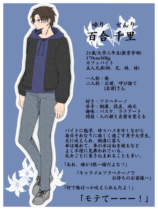 こちら【@zoetrope_TL】の企画に参加失礼致します。 何かと不憫な一般男子大学生です。 のんびり遊んで頂ければと思います。 よろしくお願い致します! #DVZ_CS #DVZC_ユリセンリ