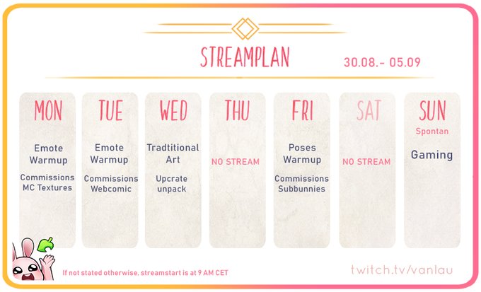 Streamschedule for this week