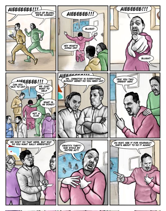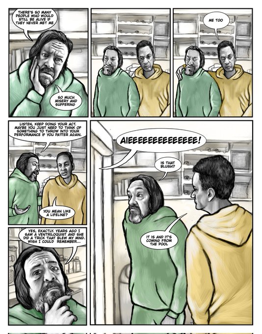 My pinned tweet is my dark humor, horror, mindflip graphic novel in progress "Delusions of Grandeur"