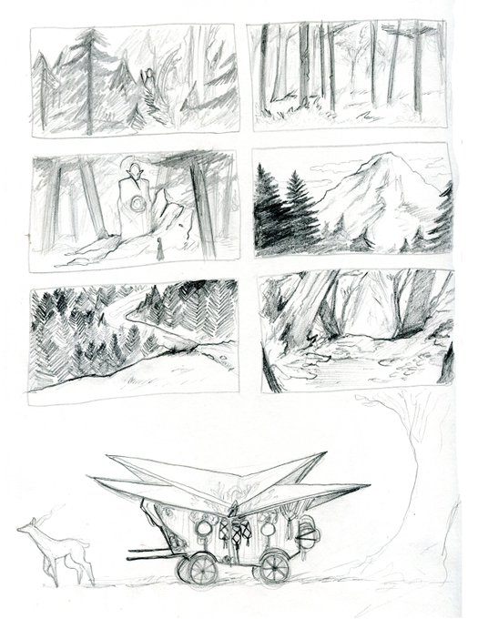 Some thumbnails for key moments for my MA! Excited to develop these and get some snazzy scenes from them