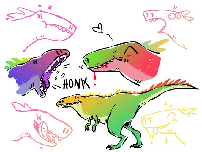 3rd entry in #Dinovember! I rolled up a Suchomimus. One thing I'm enjoying about this is the ability to come up with different colour schemes for the different dinos :). #DrawDinovember #dinosaurs