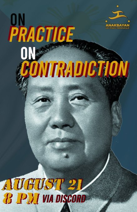 Tara na’t magsidalo at sama-sama nating talakayin ang On Practice, On Contradiction ni Mao Zedong ngayong August 21, 8pm (via Discord) ! 😼