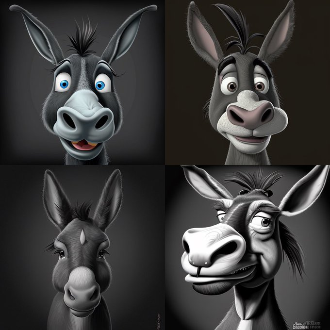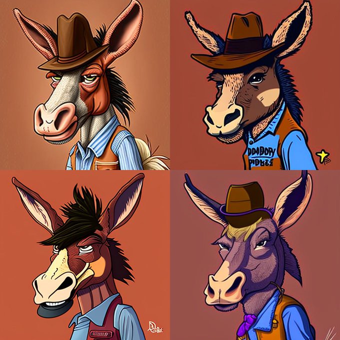 Here are a couple of the original prompt grids that became parent images in the collection of #midjourneyV4 donkeys. There are a wide variety of #DONKs factions, from across the donkey universe. This blind mint will have something for everyone! Coming soon!