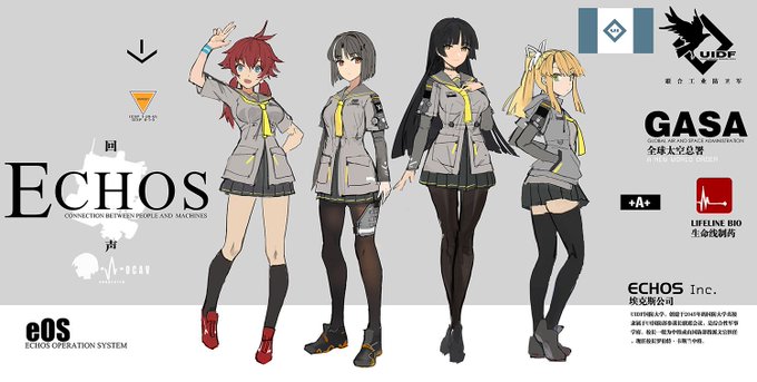 由于工作太忙,进度只有这么一点(跪),《echos》是最终想好的名称,这些特殊体质女孩都具有与无人机进行连接的特殊体质,通过埃克斯公司(echos inc)开发出echos系统能通过ESAT与无人战斗机(UCAV)连接进行战斗