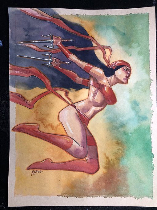 Red Dawn!. This morning's warm-up Available 9x12. #artiste #artist #art #elektra #elektraassassin #marvelcomics #elektracosplay #sexy @marvel #mixedmedia #inkwash #warmup #hattarihanzo #swords #strongfemalecharacters