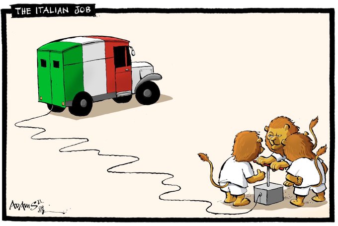 'The Italian Job' (1969) en viñetas "preparatorias" de la final de la #Eurocopa2021 de @Adamstoon1 y @GraemeBandeira