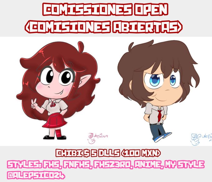 Ya tengo estilo chibi en comisiones!!, a solo $5 dlls (100 peso mexicano).