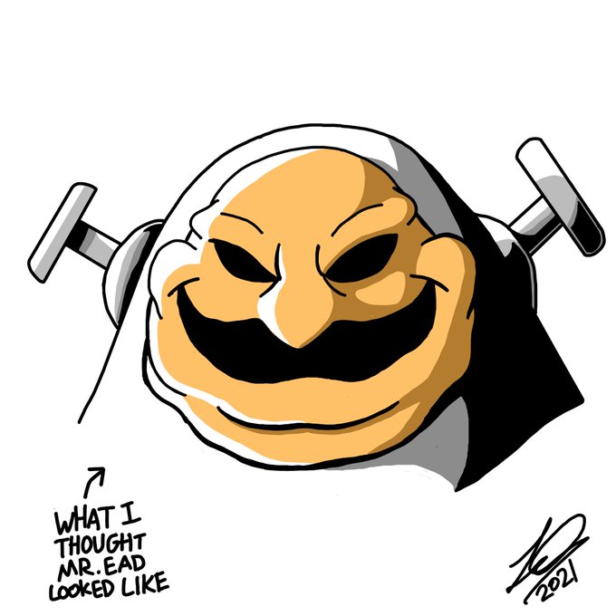 When I first played F-Zero X many years ago, cuz of how blurry my old crt tv was, I thought Mr.EAD's mustache was his mouth and his eyebrows were his eyes and had a pumpkin like face which I thought was cool. Then was disappointed finding out what he really looked like 😅