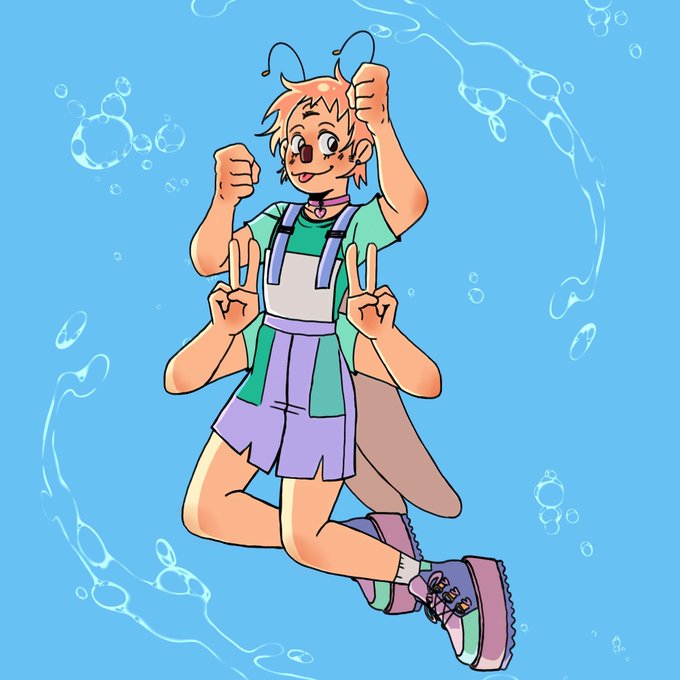 @peachycattt2 This is pj! He’s in collage for music, he’s half firefly. I love him because his design and personality has come so far from where it was years ago, he’s also so sweet and fun to draw, he’s definitely one of my most huggable ocs 🍄✨