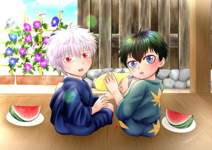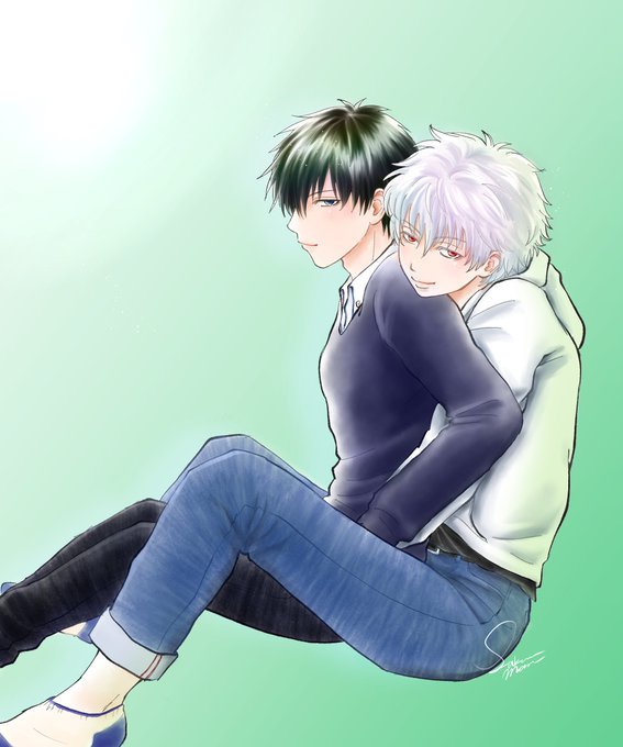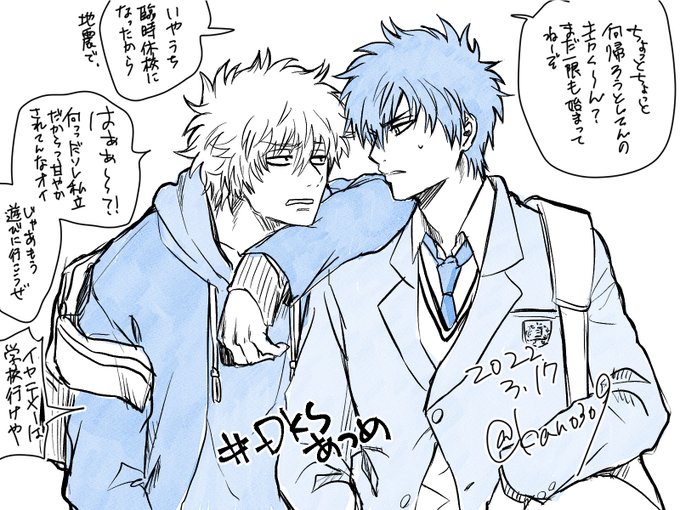 #GHあつめ #DKSあつめ 同級生、幼なじみ……銀土が幼少期から一緒にいるのかと思ったら、何かが爆ぜそうになりましたw 再掲ですみません。内一枚が過去絵過ぎて、せめて色だけでもと思って直したです😂