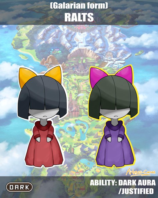More fanmade galarian forms! I based the ralts line on like princess/royalty outfits (very simplified for obvious reasons)