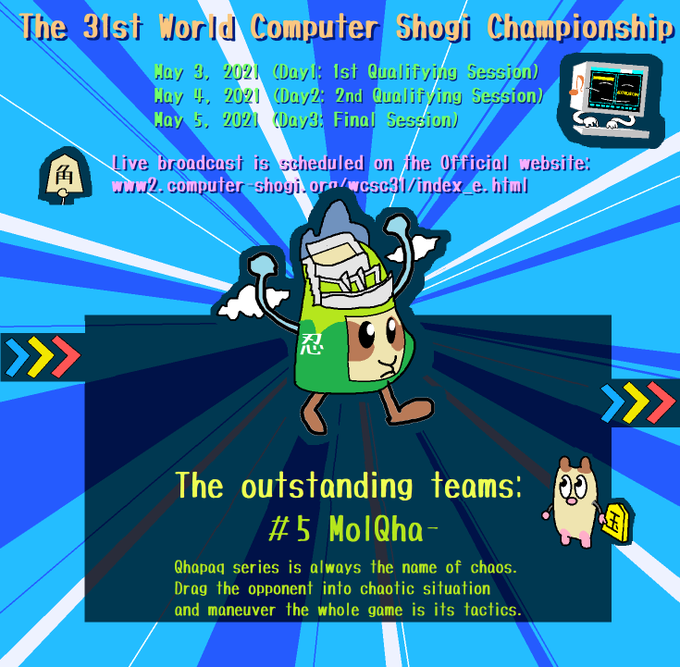 この4チームのまとめ貼りを忘れてたので貼っておくぜ(^~^) #wcsc31 #shogi #computershogi #computergame #gamedeveloper #programming #gameprogramming #artificial_inteligence #AI