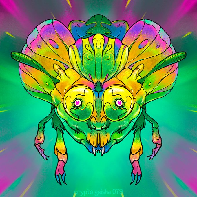 This Crypto Geisha is still waiting for some new owners, 5 pieces left... join the #GeishaGang! 🌈🙌 #nftcollectors #nftart