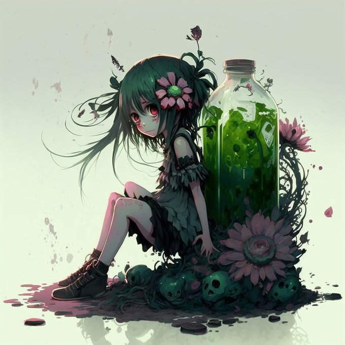 Anime by Wlop, Hatsune Miku, a girl,anime,kawaii,long emeraldgreen hair,High Quality,