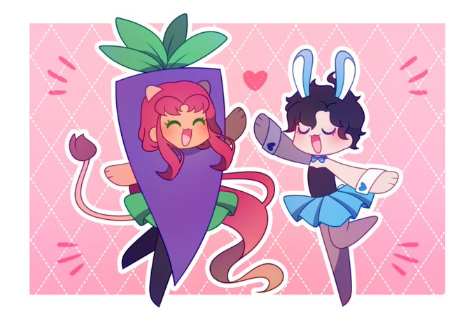 🤩✨ Art trade with mah friends @peanutnom 🐱♦️🌱 and @amayaaki16 🥕🐰