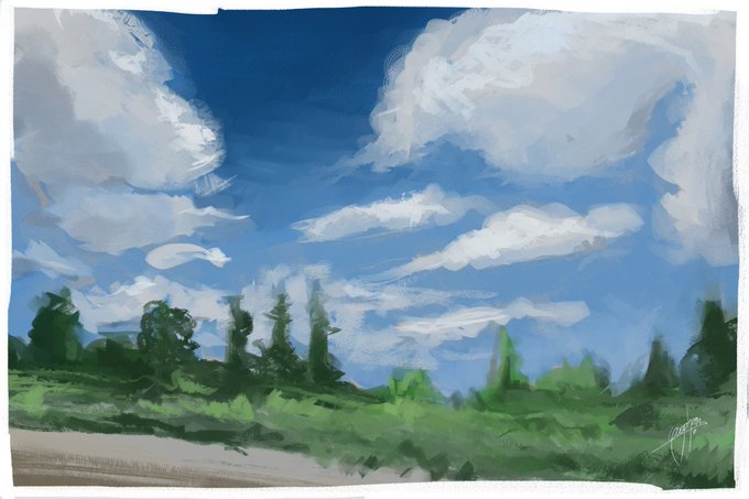 @Neon_woof took some beautiful cloudy pictures which I simply had to paint. Used this opportunity to try out @paololimoncelli's brushes which @Stratica_Art suggested. C: