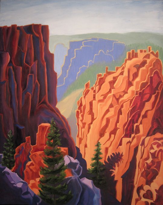 This breathtaking painting by Ruth Soller is "Black Canyon of Gunnison". Ruth celebrates the grandeur and magnificence of nature and feelings of hope and possibility. She states, "My purpose is to share my awe of nature and create energy and joy..." https://t.co/mnOnO67Vpe