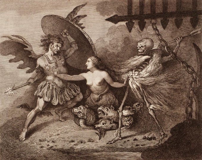 thomas rowlandson and john ogbourne after william hogarth, satan, sin and death, a scene from milton’s paradise lost, 1792