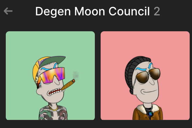 -Staking + Royalties with halving cycles | First 20 degens joining the Moon Council will receive 50% of royalties.