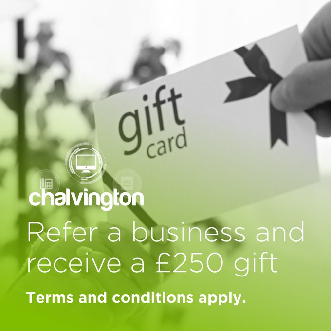 If you know a business who can benefit from our range of services here at Chalvington, we'd love to hear about it! Just fill out our quick referral form and you could receive £250 in vouchers or a new tablet or mobile! Ts and Cs apply.