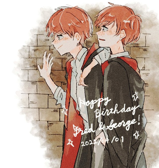 フレッド、ジョージ誕生日おめでとう🎉生まれてきてくれてありがとう、いつも笑顔で悪戯して勇敢で優しく目標に向かって真っ直ぐ明るく進む二人が大好き~!