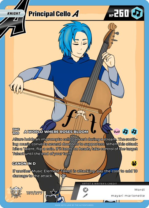I drew the art for the Principal Cello card! Had a mini heart attack when it showed up on stream