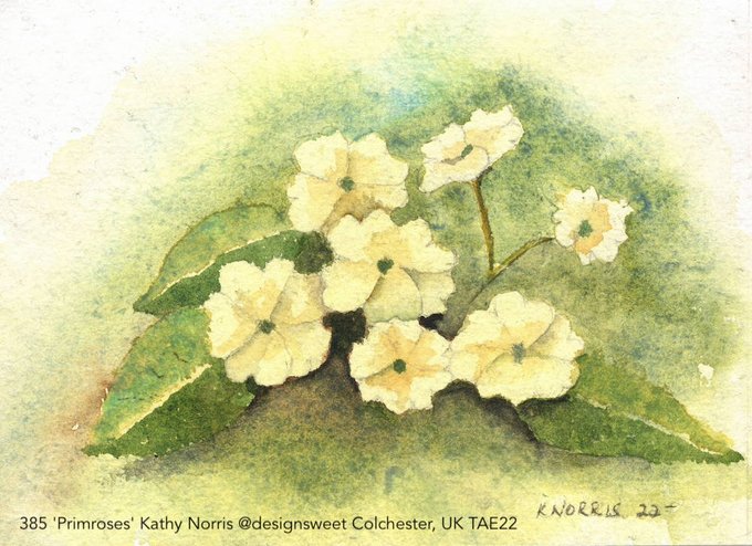 'Primroses' by artist Kathy Norris @designsweet (Colchester, UK)