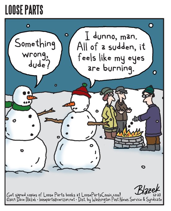 You ever get that feeling? #snowmen #firepit #comics #holidayhumor #cartoon #coal #wednesdaythought