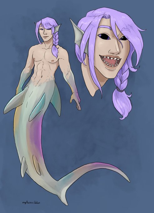 [ ffxiv spoilers ] reference sheet commission of a thresher shark merrow hythlodaeus!!